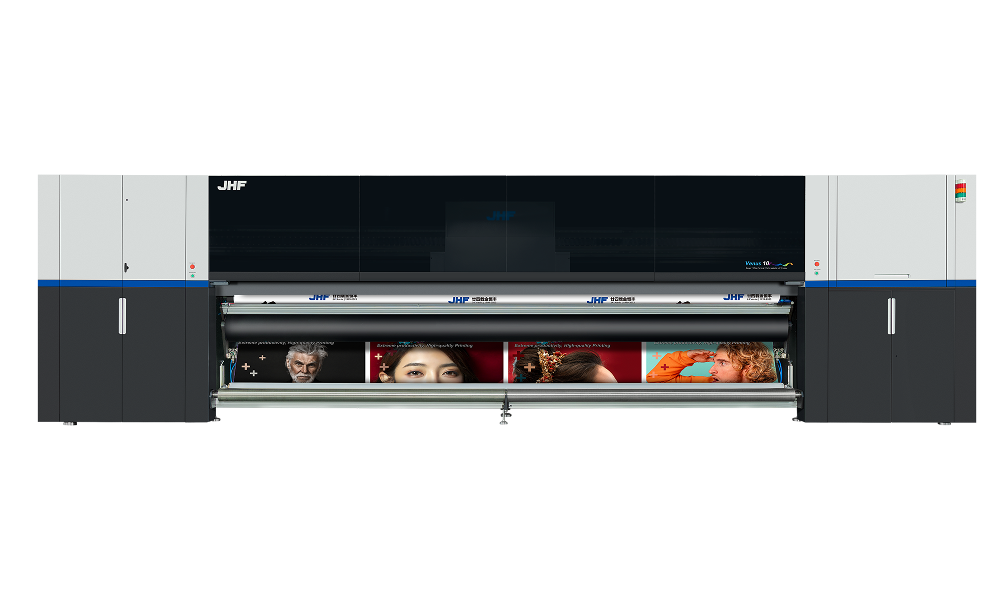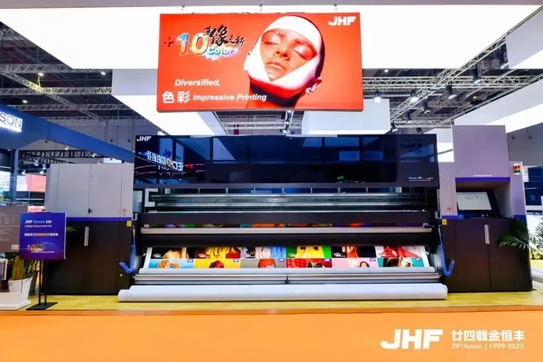 Independently developed by JHF, Venus 10r is another masterpiece in the field of ultra-wide industrial printers, integrating intelligence, speed, precision, and stability. Venus 10r is equipped with a dual-row ten-color output system, achieving image-level output. With a 5-meter wide format and the capability of printing multiple rolls simultaneously, it effectively improves production efficiency and adapts easily to various application scenarios, saving costs for industries. Venus 10r introduces industrial PLC and automated integrated operation, eliminating operation buttons on the machine body; print job control can be completed at the operation desk, requiring no personnel to oversee, achieving fully unmanned intelligent printing. In the field of advertising, Venus 10r will redefine professional and high-quality product standards, driving the market to new heights.